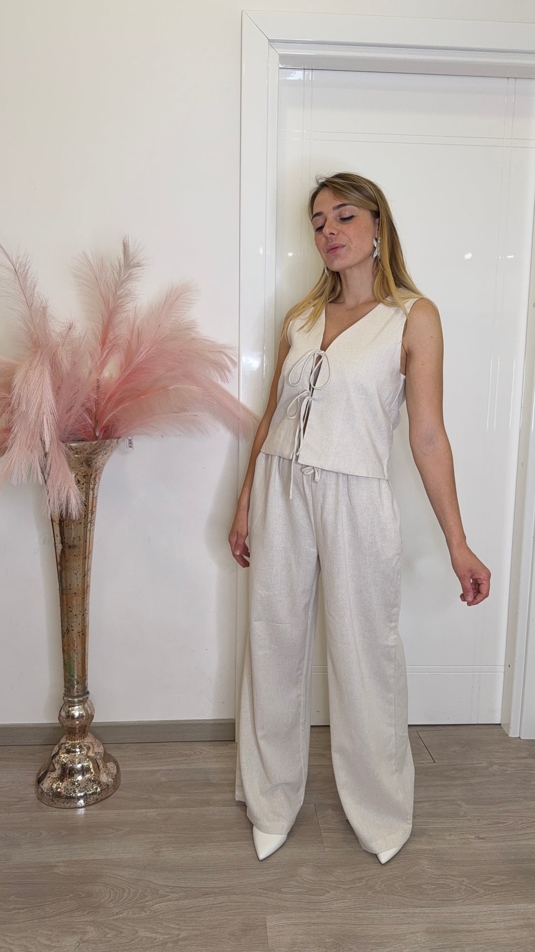 Completo in viscosa e lino.