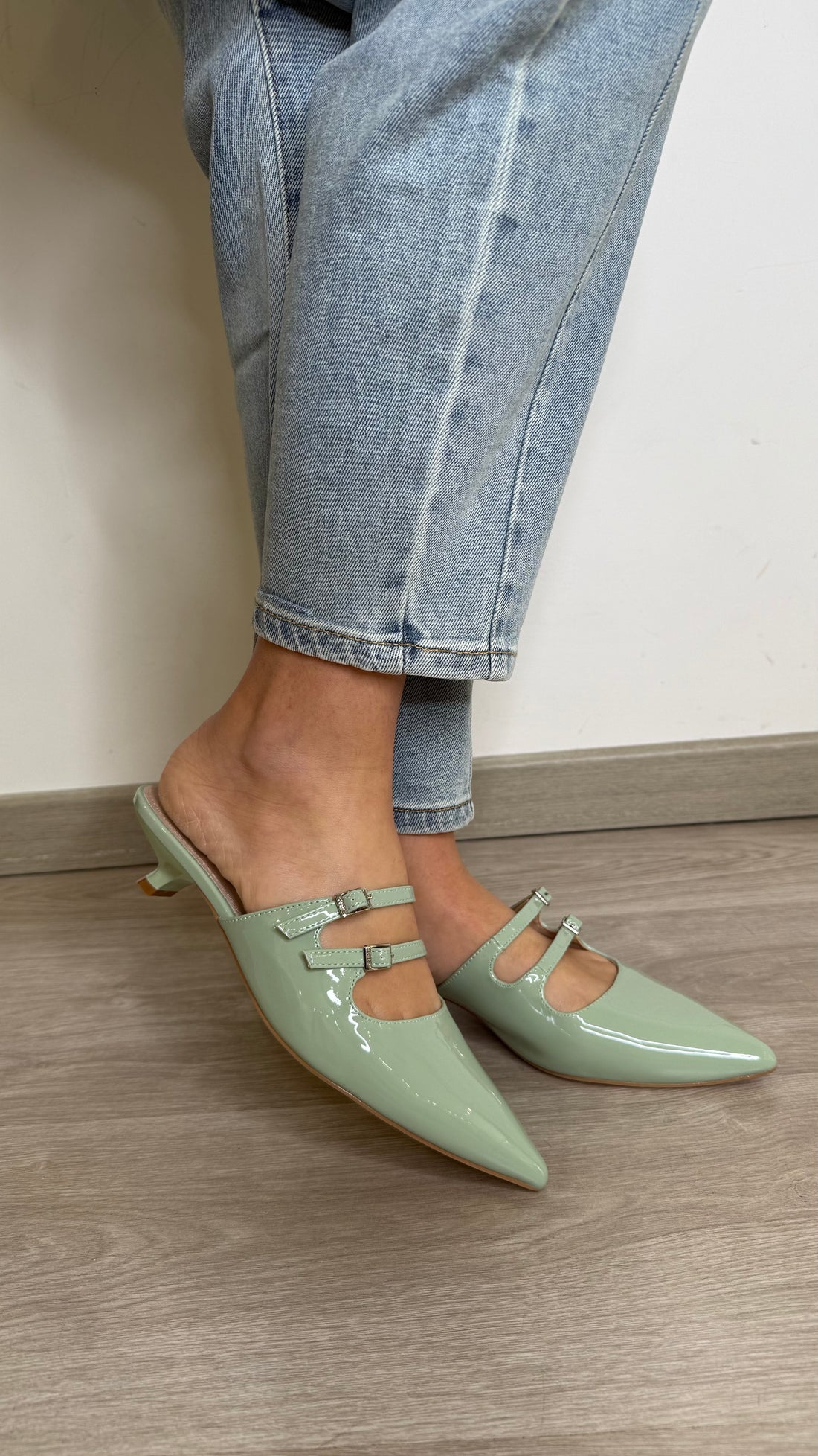 Décolleté scalzate in vernice con tacco di 3 cm.