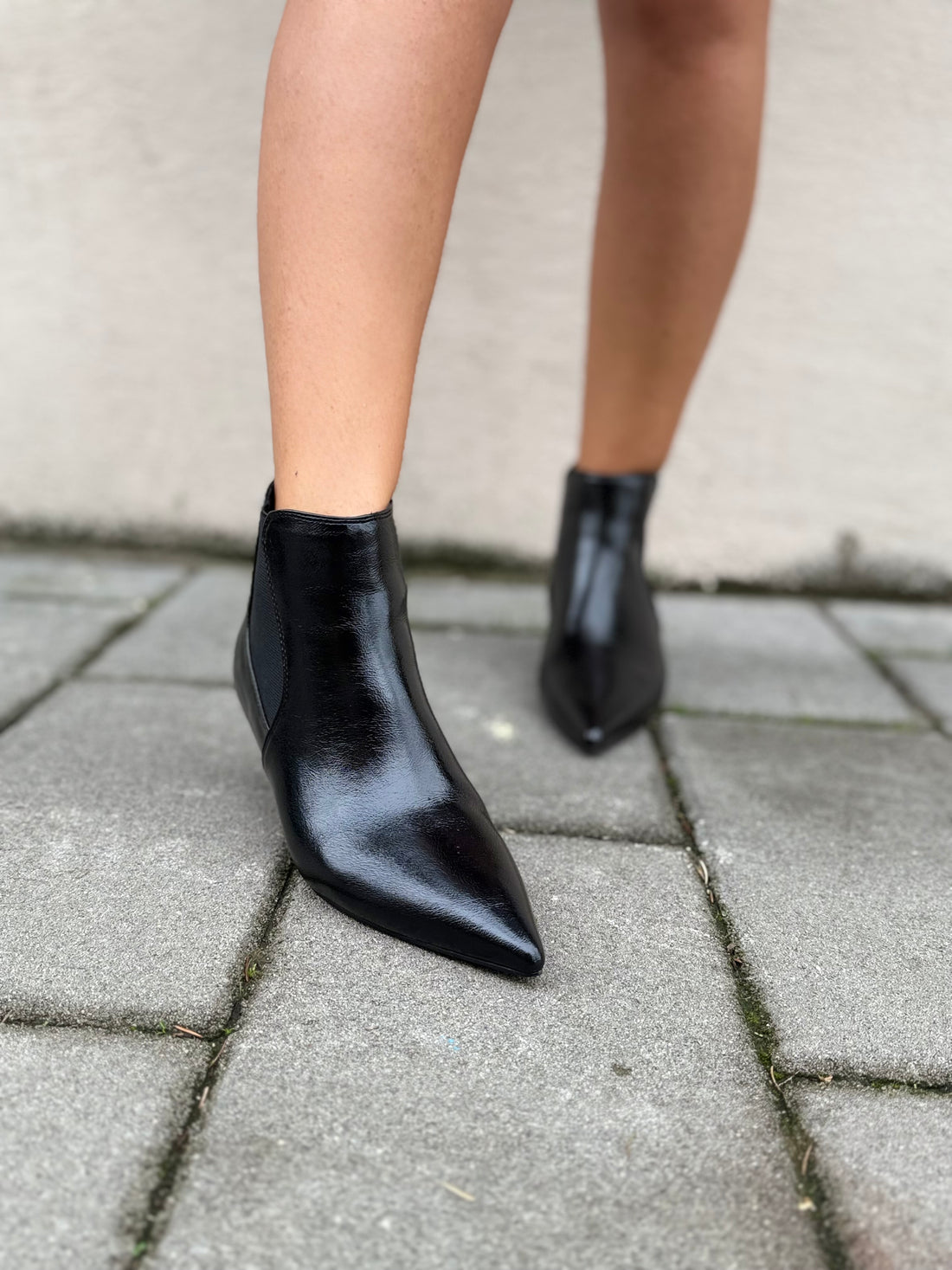 Stivaletto modello anfibio con dettaglio e chiusura con zip laterale Vestibilita stretta consigliamo un numero...