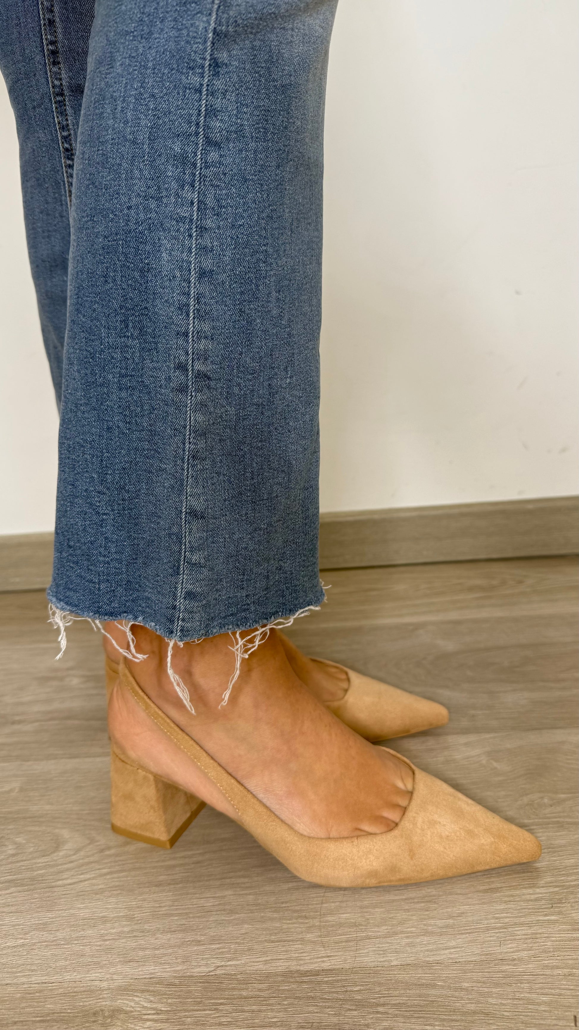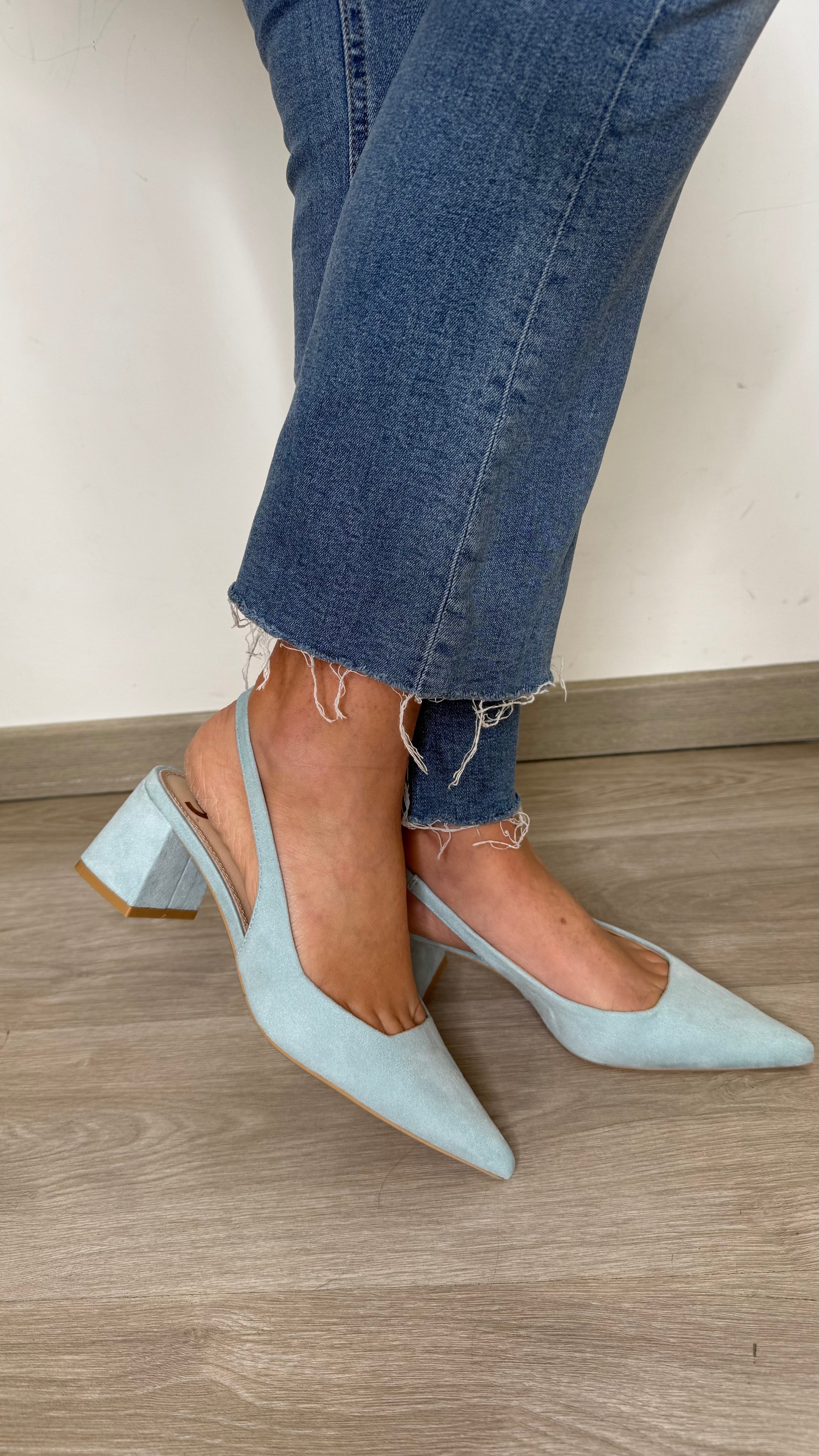 Décolleté slingback in camoscio con tacco quadrato di 5 cm
