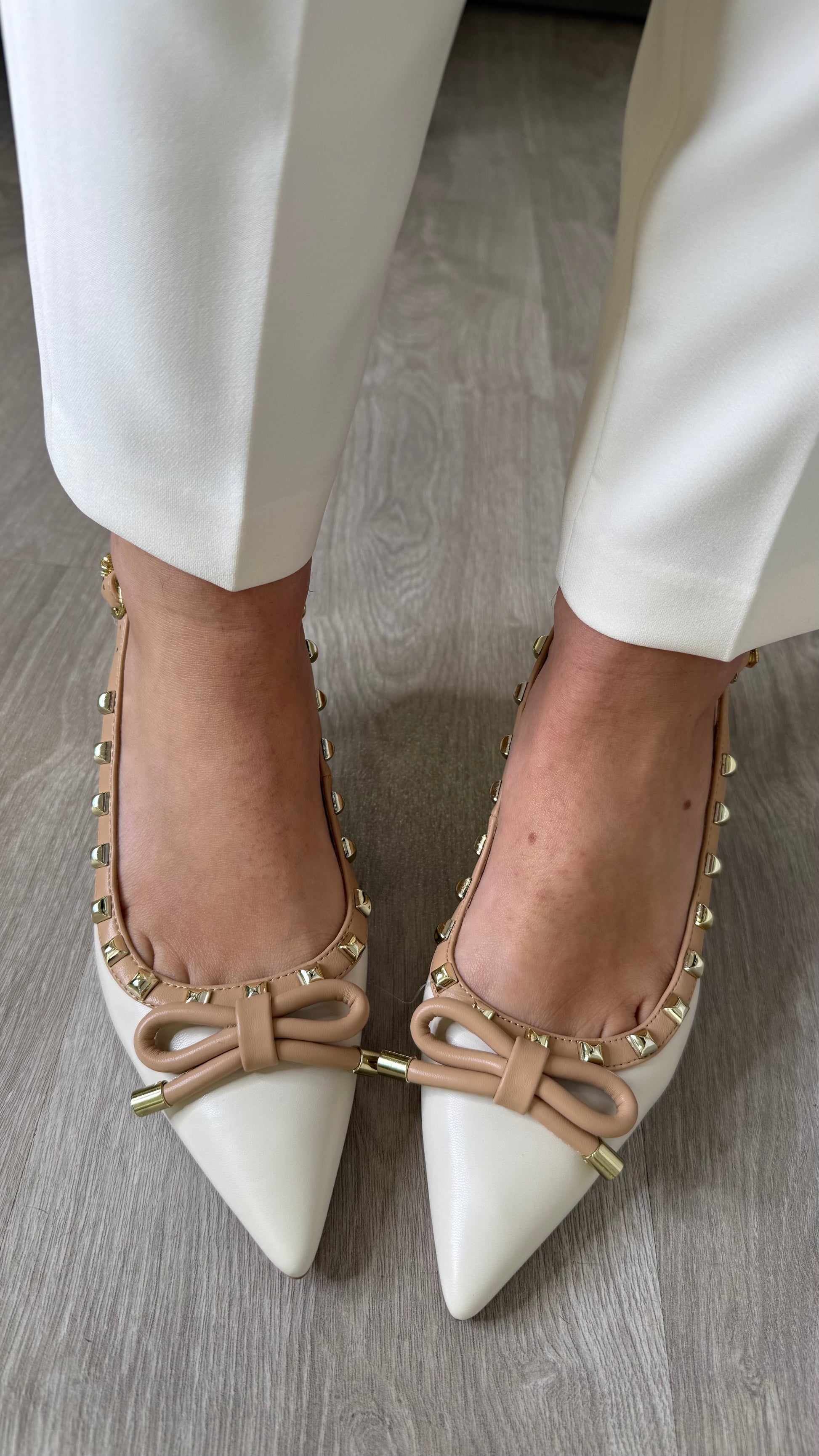Décolleté slingback con particolari in borchie ed applicazioni.