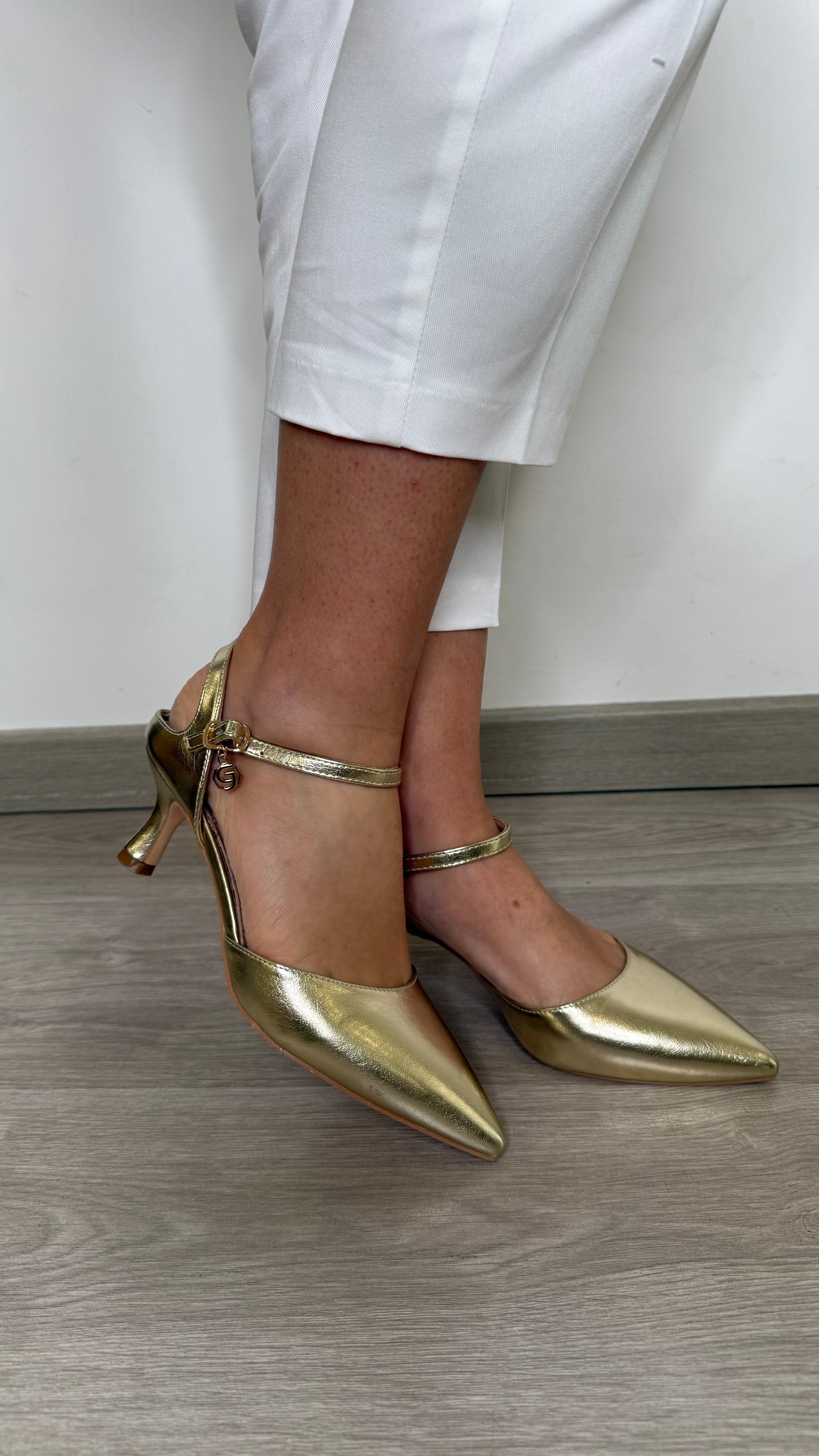 Décolleté con cinturino alla caviglia. Tacco 7 cm