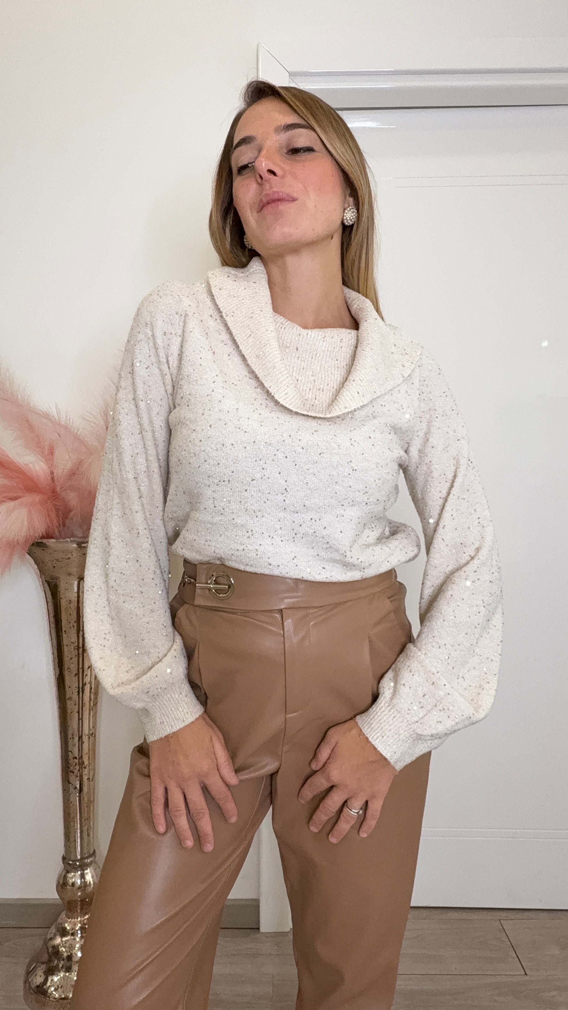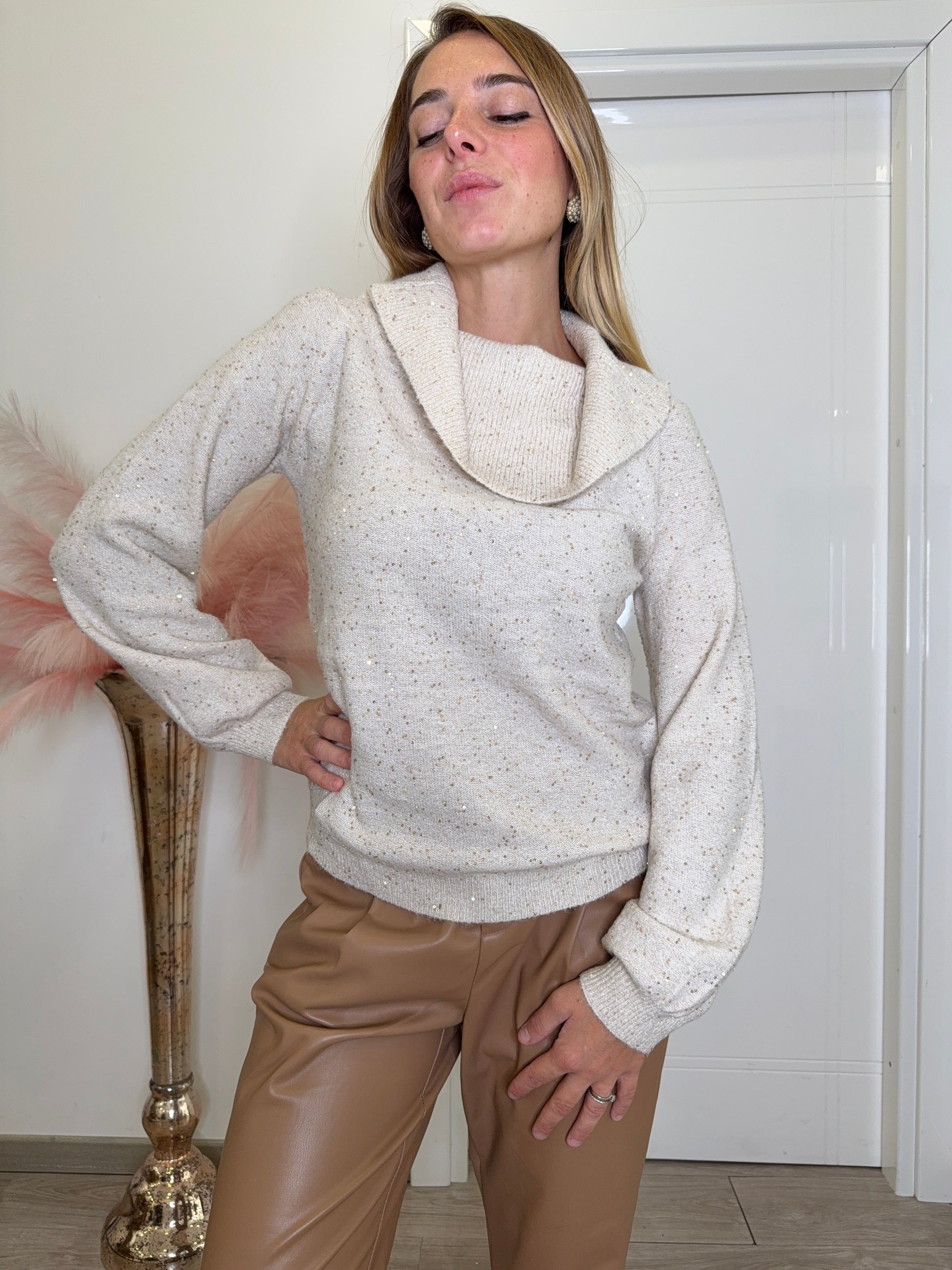 Maglia con scollo sciallato con piccole applicazioni in paillettes