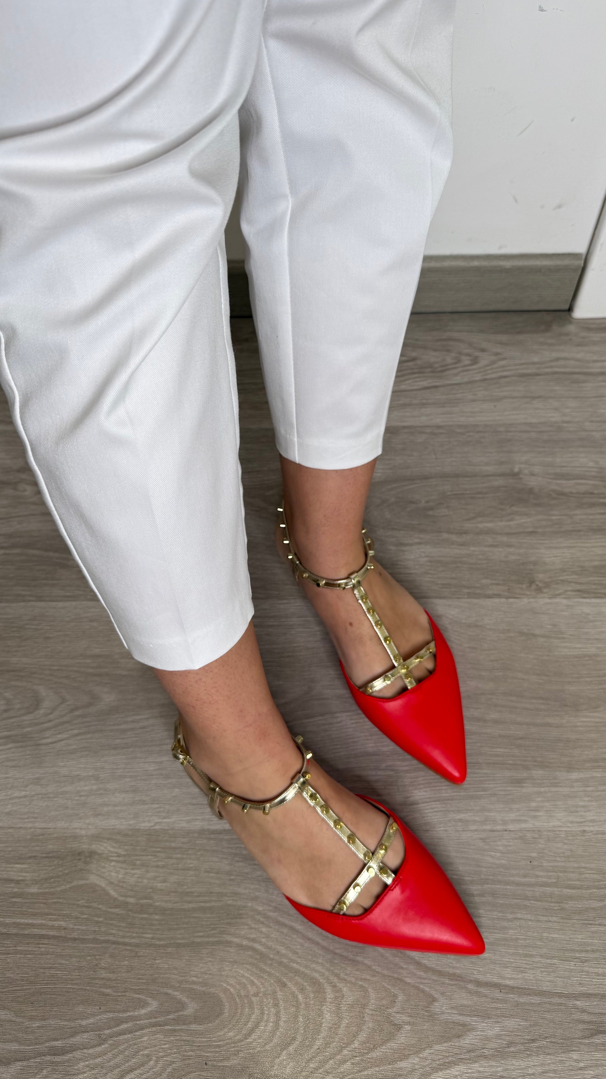 Ballerine con dettagli in borchie, con chiusura alla caviglia.